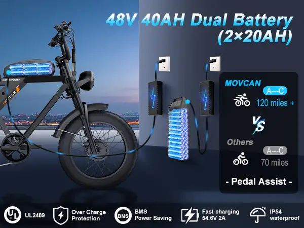 The dual motors deliver torque that’ll put a smile on any rider’s face, the dual batteries give you real range freedom, and the overall build quality feels premium from top to bottom. Movcan clearly put thought into how riders actually use their bikes — and it shows in every detail, from the sturdy frame to the hydraulic brakes.