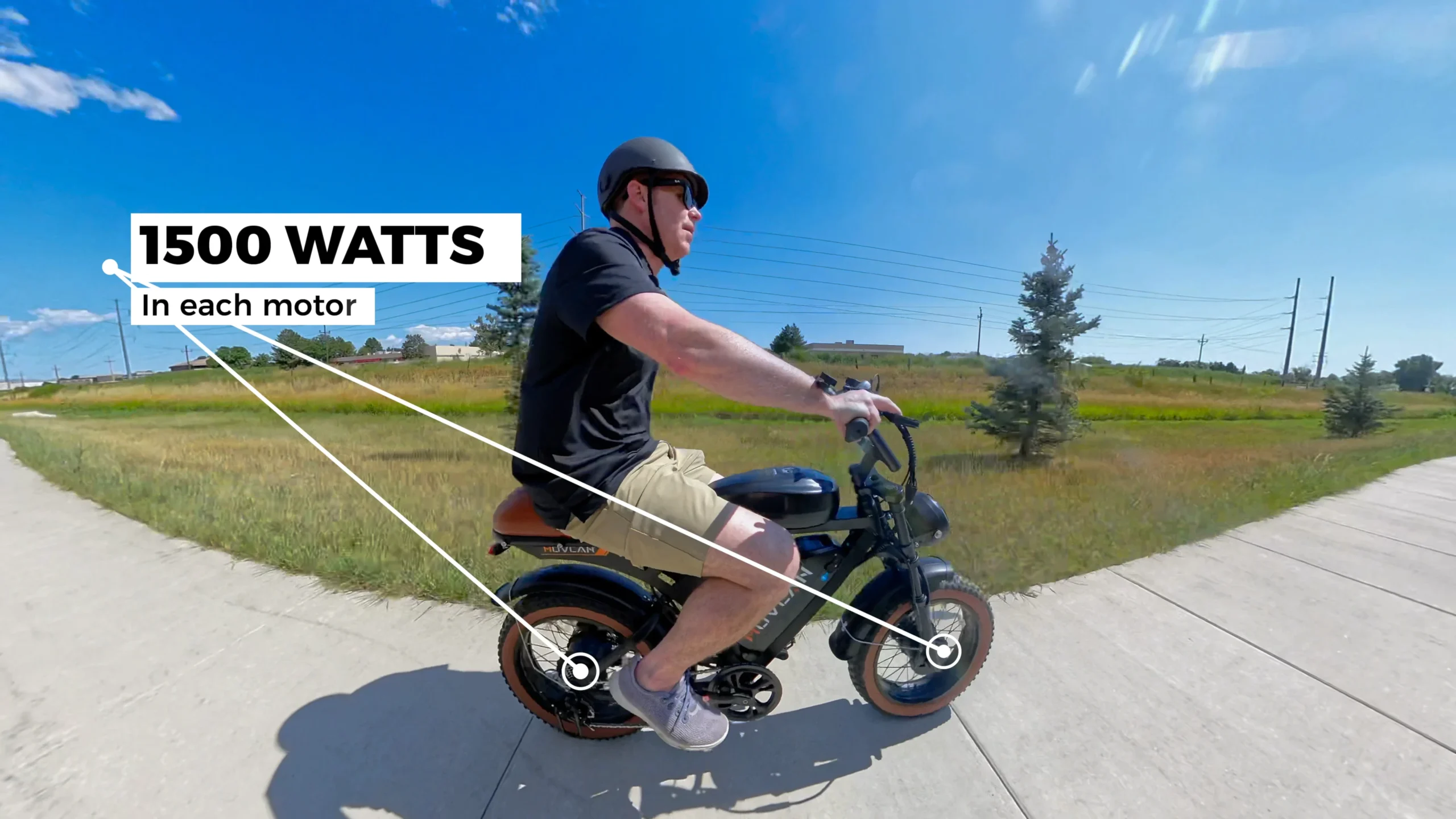 This thing runs dual 3000W motors, one on each wheel, giving you a total of 6000 watts of peak output. On paper, that’s impressive. On the trail? It’s wild.