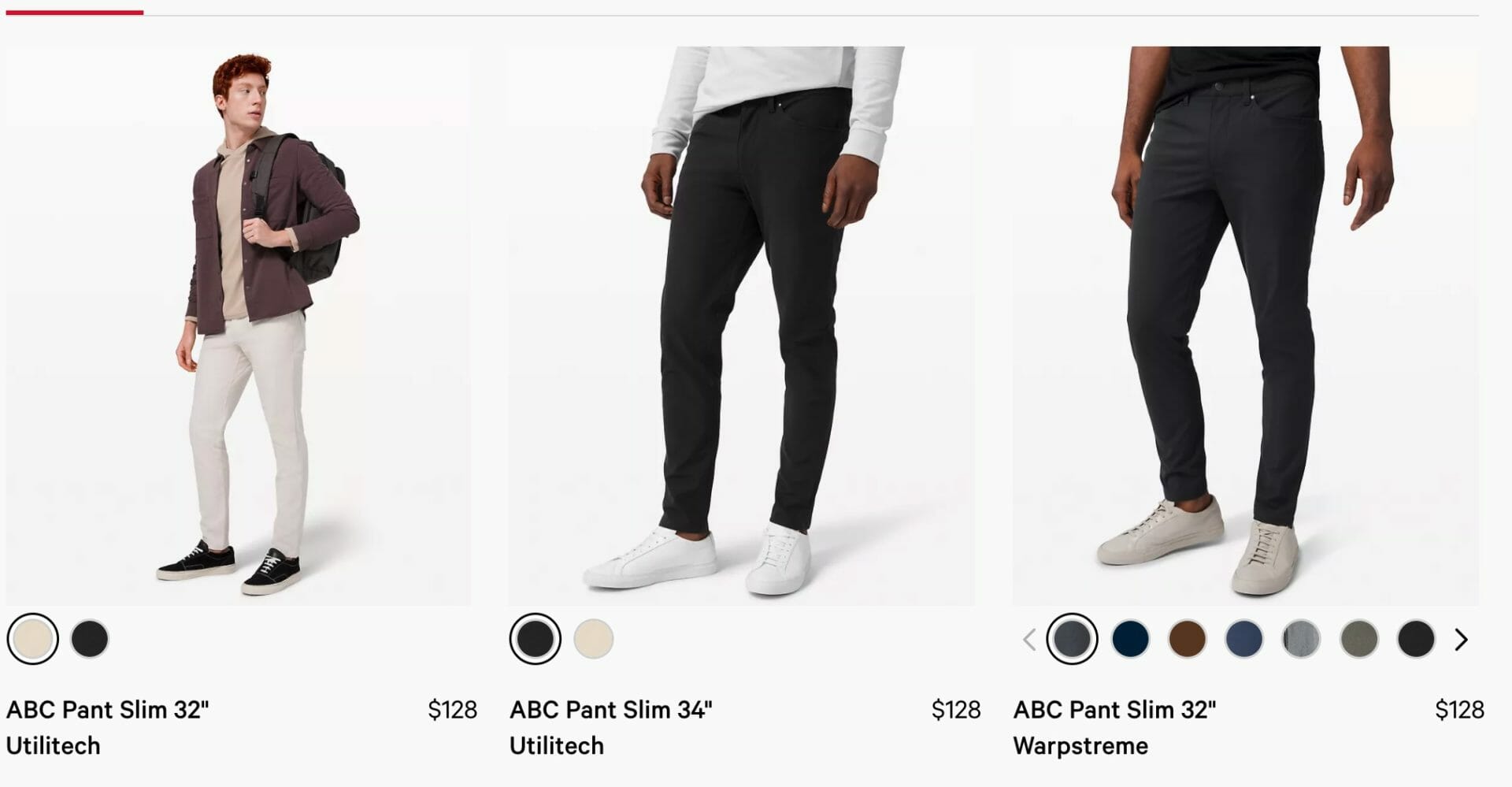 It turns out there isn’t just 1 “lululemon ABC Pant.” It’s actually the name given to a technology used by many Lululemon ABC Pants. There are over 5 different styles of Lululemon ABC Pants (1 even being the ABC Jogger).