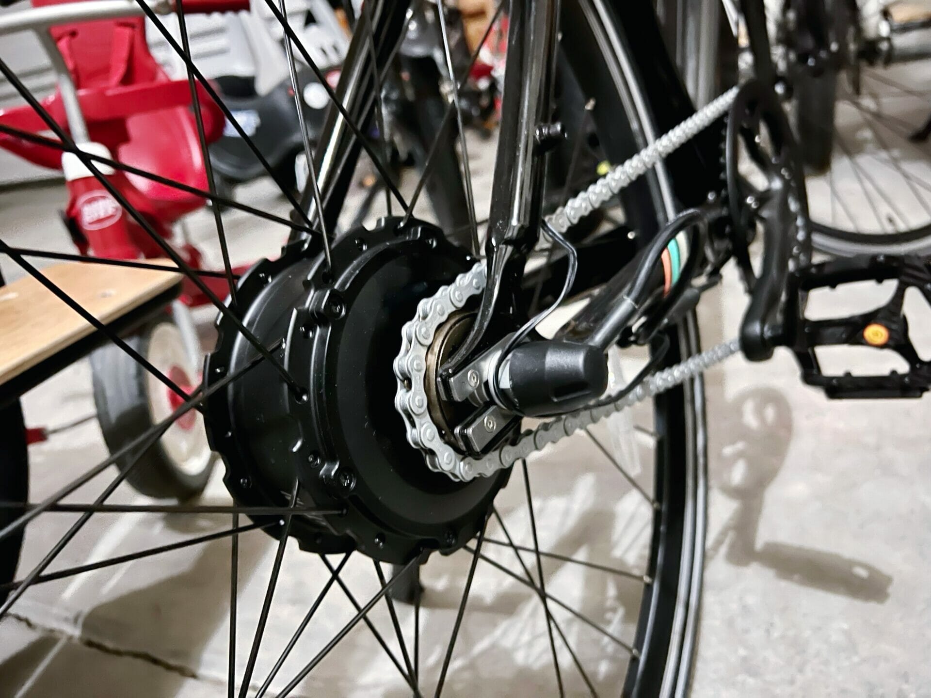 The tradeoff is that you can’t pedal as easily up hills, but with a throttle mode (more on that in a second) it’s not a big deal.