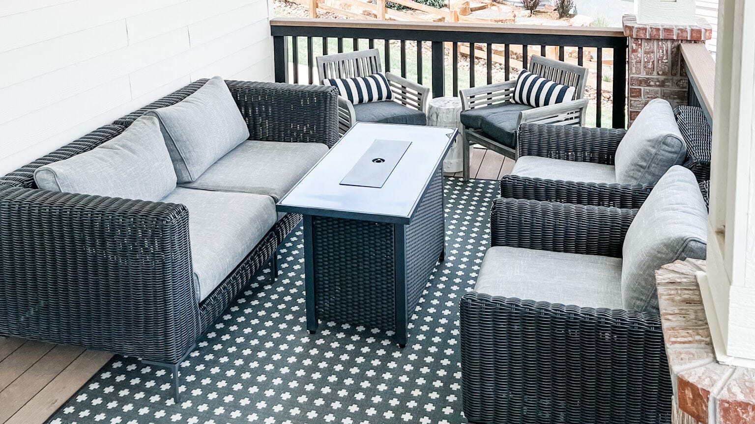 We also added a new Ruggable from their outdoor collection, the Outdoor Adde Black Rug to the space to make it feel a little bit warmer and tie all the furniture in together and really make a “space.” This is our 8th Ruggable! I will never purchase a “traditional” rug again.