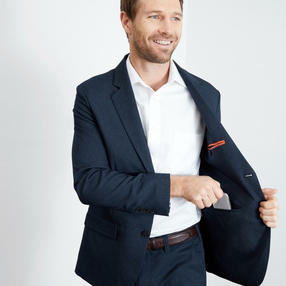 The other trick to a suit looking more expensive? Making sure it’s not wrinkled. That’s why the Gramercy Blazer is awesome because it is super wrinkle-resistant.