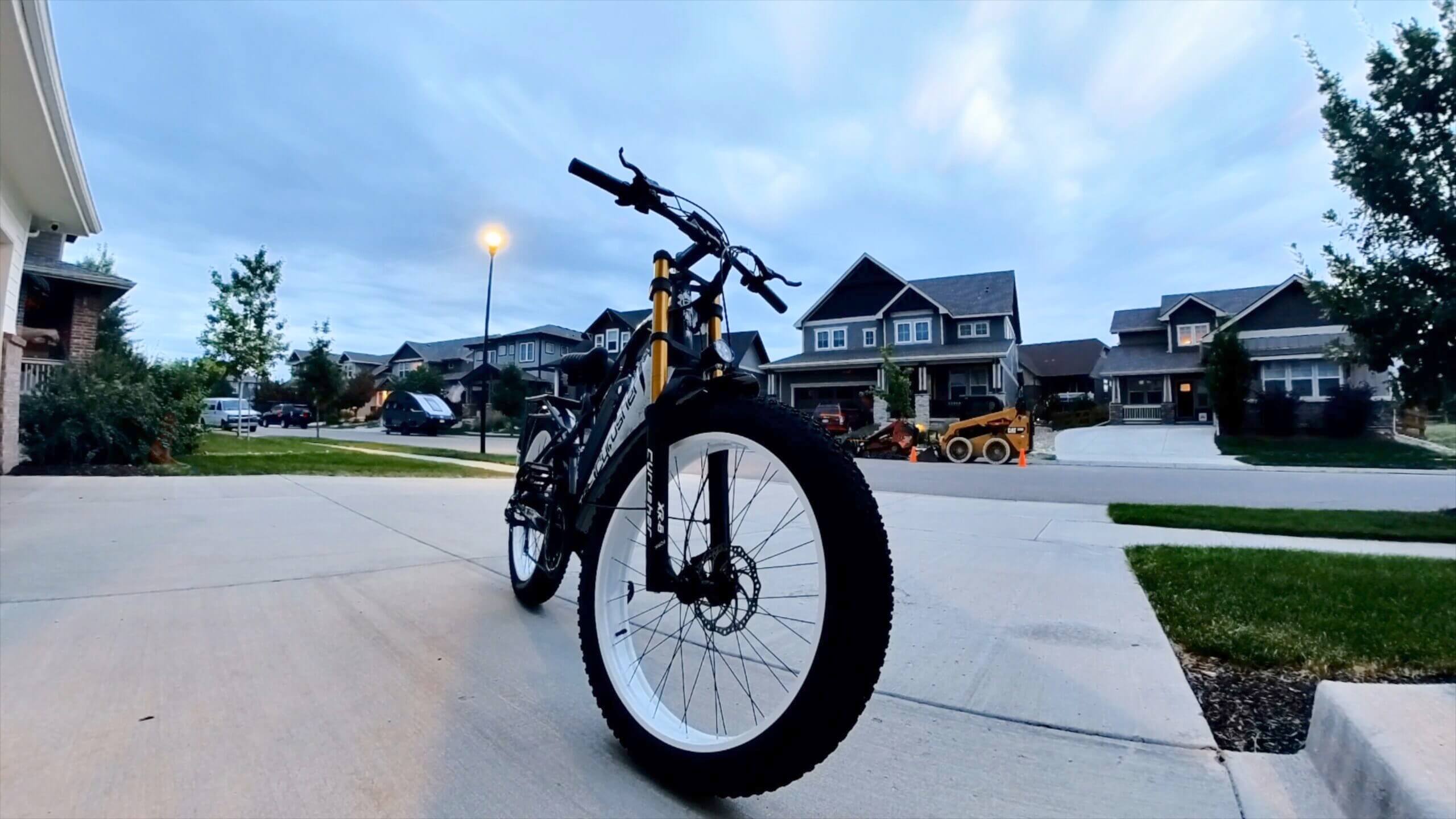 We’ve reviewed a lot of fat tire eBikes (read about the best fat tire ebikes), but this eBike includes some of the thickest fat tires we’ve tested on an electric bike. At 4.0″ wide, these mountain-style puncture-resistant fat tires provide better grip, even in sand or snow, as well as giving it a look that turns heads.