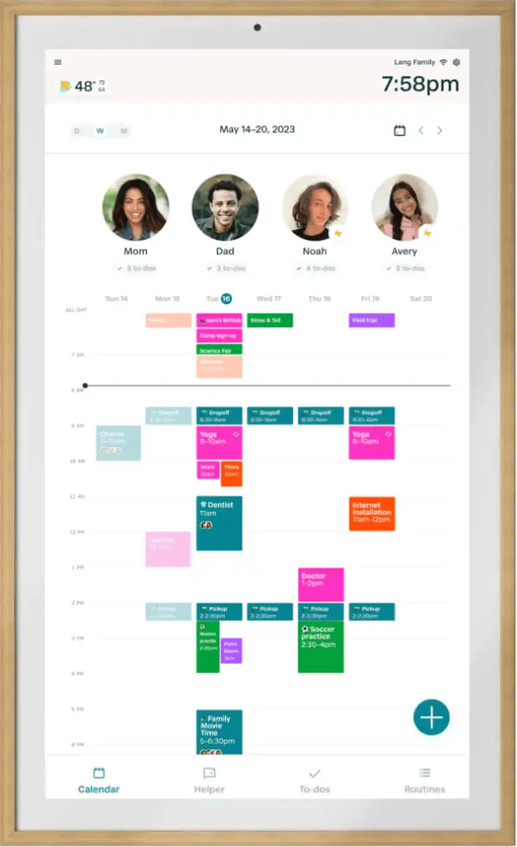 Think of it as your household’s personal assistant on a touchscreen. You can schedule events, create to-do lists, and set routines, all in one place. Each family member gets their own profile with a color-coded view and their own photo, making it super easy to see who’s got what going on at a glance.