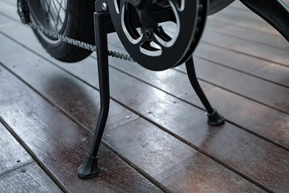 If you’ve never had a bike with a center kickstand, it’s awesome. That’s because it keeps the bike balanced when you load it down with cargo – or even when you don’t. No more picking up your heavy ebike after it’s fallen over because the kickstand didn’t catch, or your cargo got uneven.