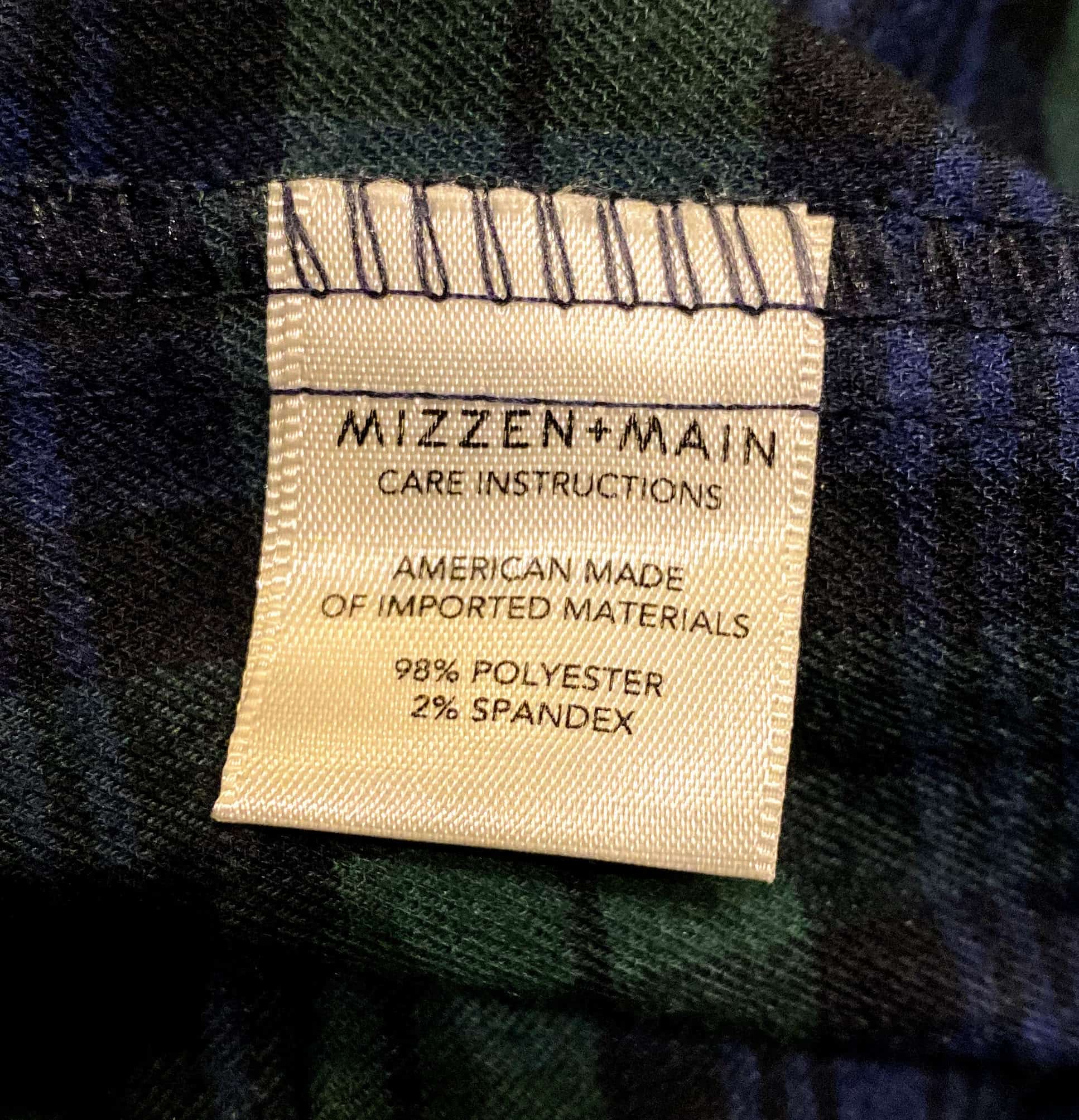 Mizzen and Main’s flannels are mostly Polyester but, it doesn’t feel like polyester. It has a much softer hand feel.