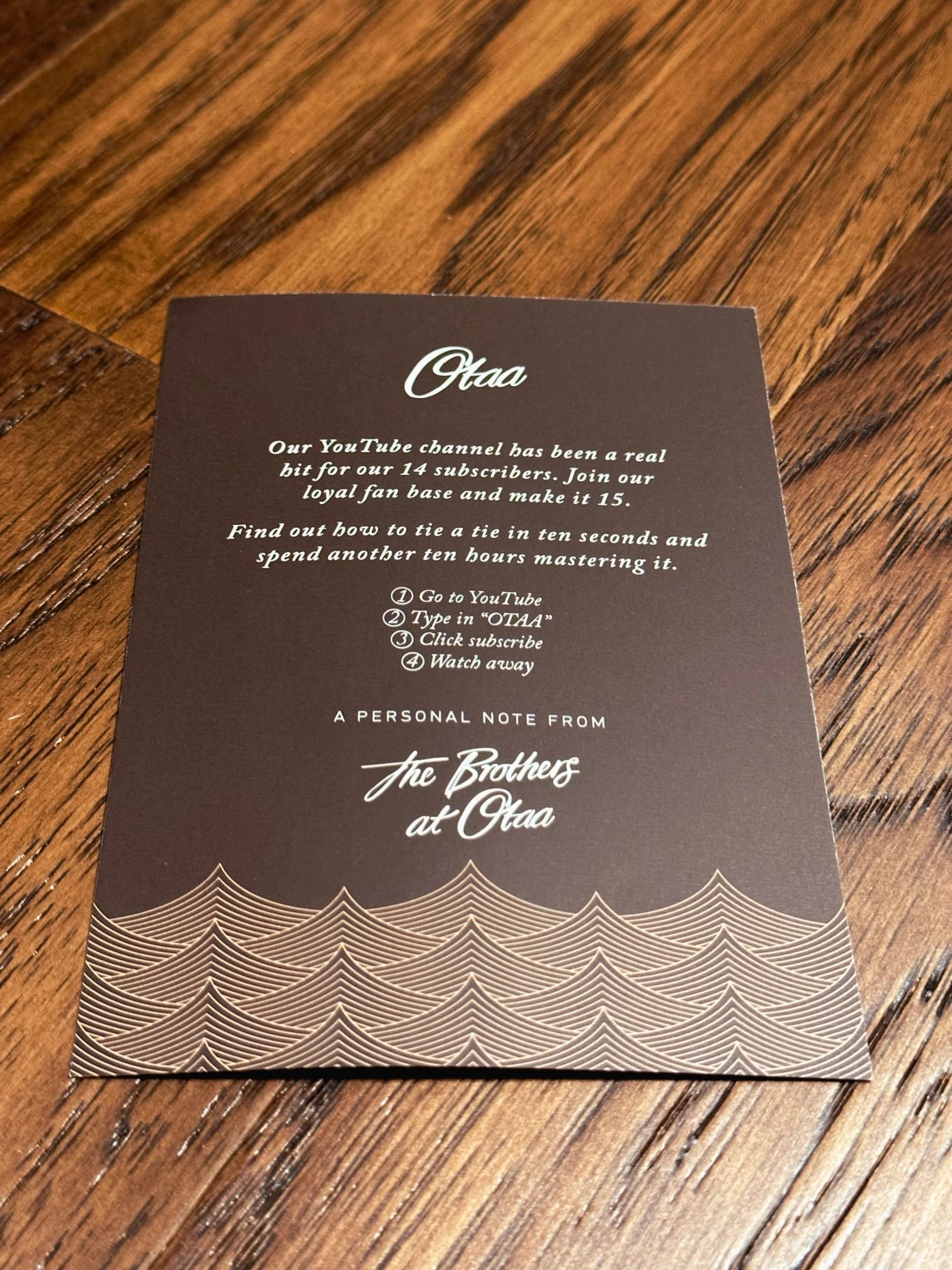 OTAA know the value of creating a fun brand. Just look at these photos from me unboxing the ties.