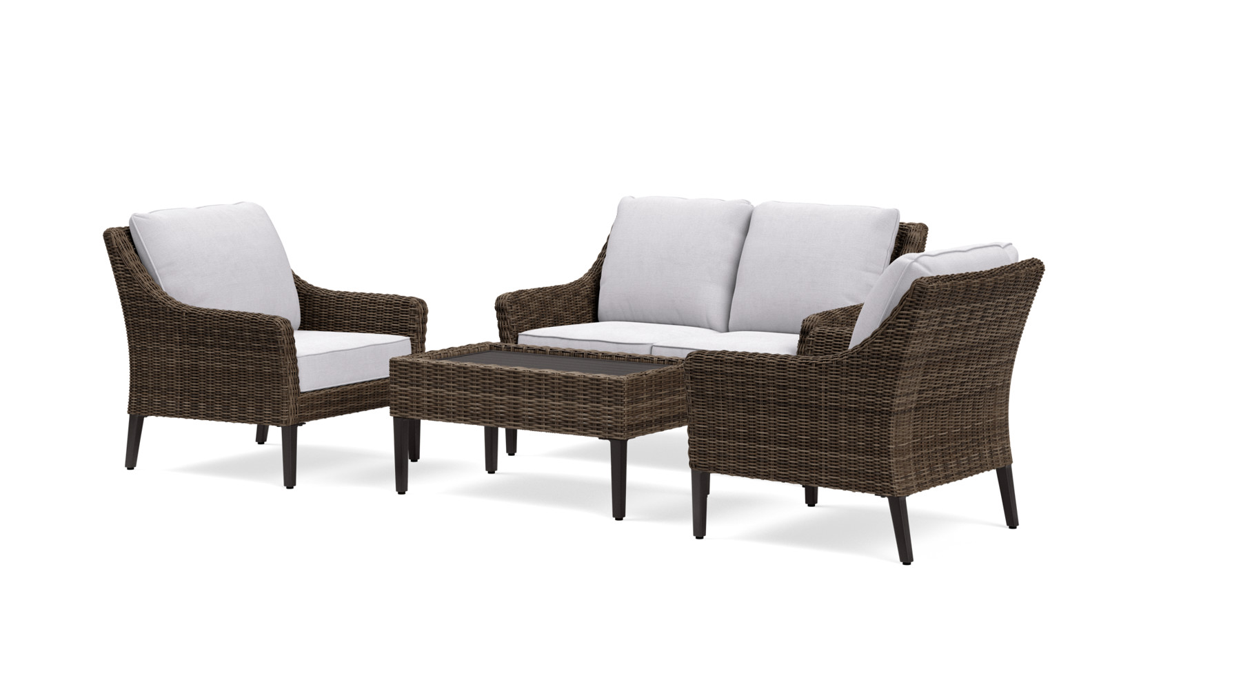 They have options in teak, aluminum and wicker and different color variations for those materials as well as color variations for their cushions. I went with the gray cushions to hide any stains, but now knowing how stain resistant the fabric is, I would not hesitate to go with the white cushions.