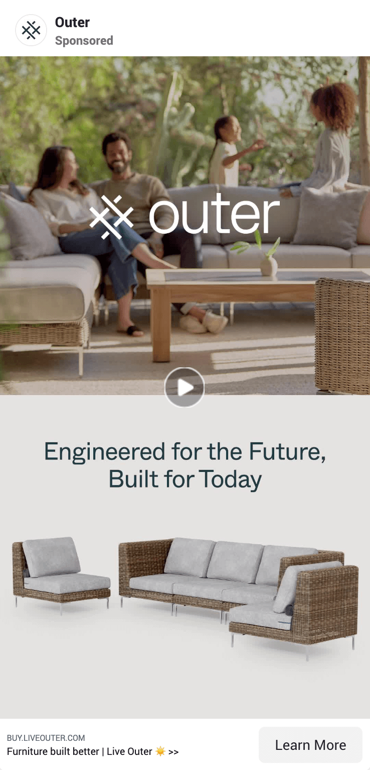 Outer is just really well thought out and executed perfectly. If you are in the market for higher-end outdoor furniture, look no further than Outer. The best selling point really is the integrated cushion covers, the high-end materials used for the construction of the base and cushions, and the overall luxe feel of the furniture.