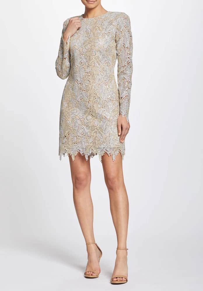 - Dress the Population Gold Sequin Dress. This dress is a showstopper! I actually wore this dress when we saw Moulin Rouge on Broadway in NYC and it was the perfect dress for the occasion. I picked this up for $50 — it retails for $288.