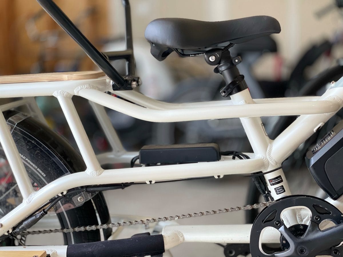 The Rear Rack was designed for customization. We installed the Rad Power Bikes Caboose and Rad Power Bikes Running Boards (also with sweet wood paneling) on the Rear Rack. However, you can also put a Thule Child Seat on the Rear Rack – it’s actually big enough to fit 2 children’s seats on the back.
