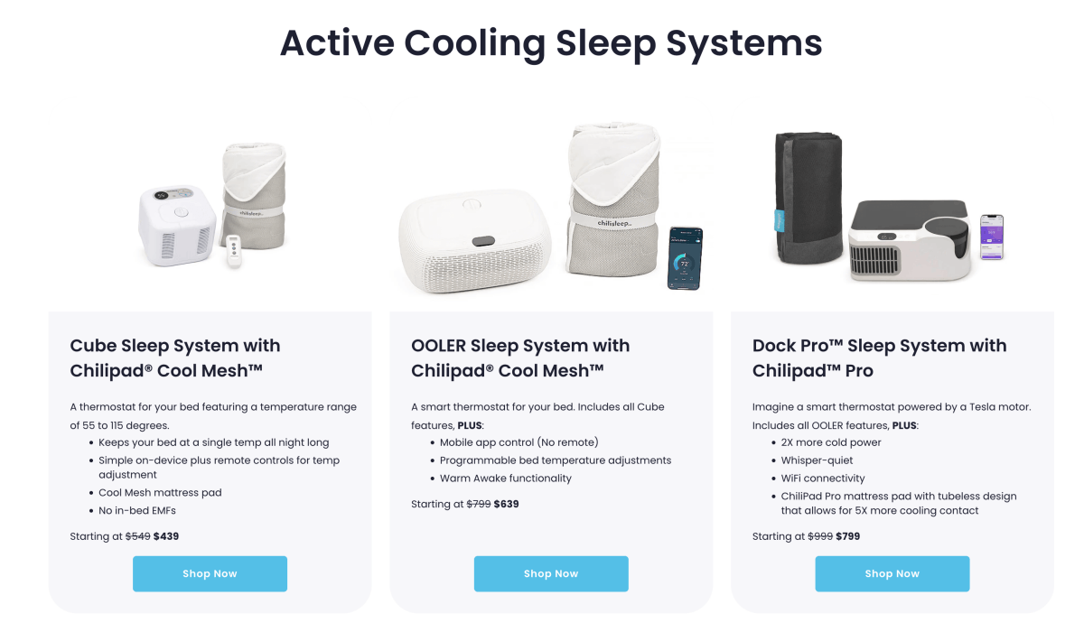 SleepMe offers a couple of main products. They are: