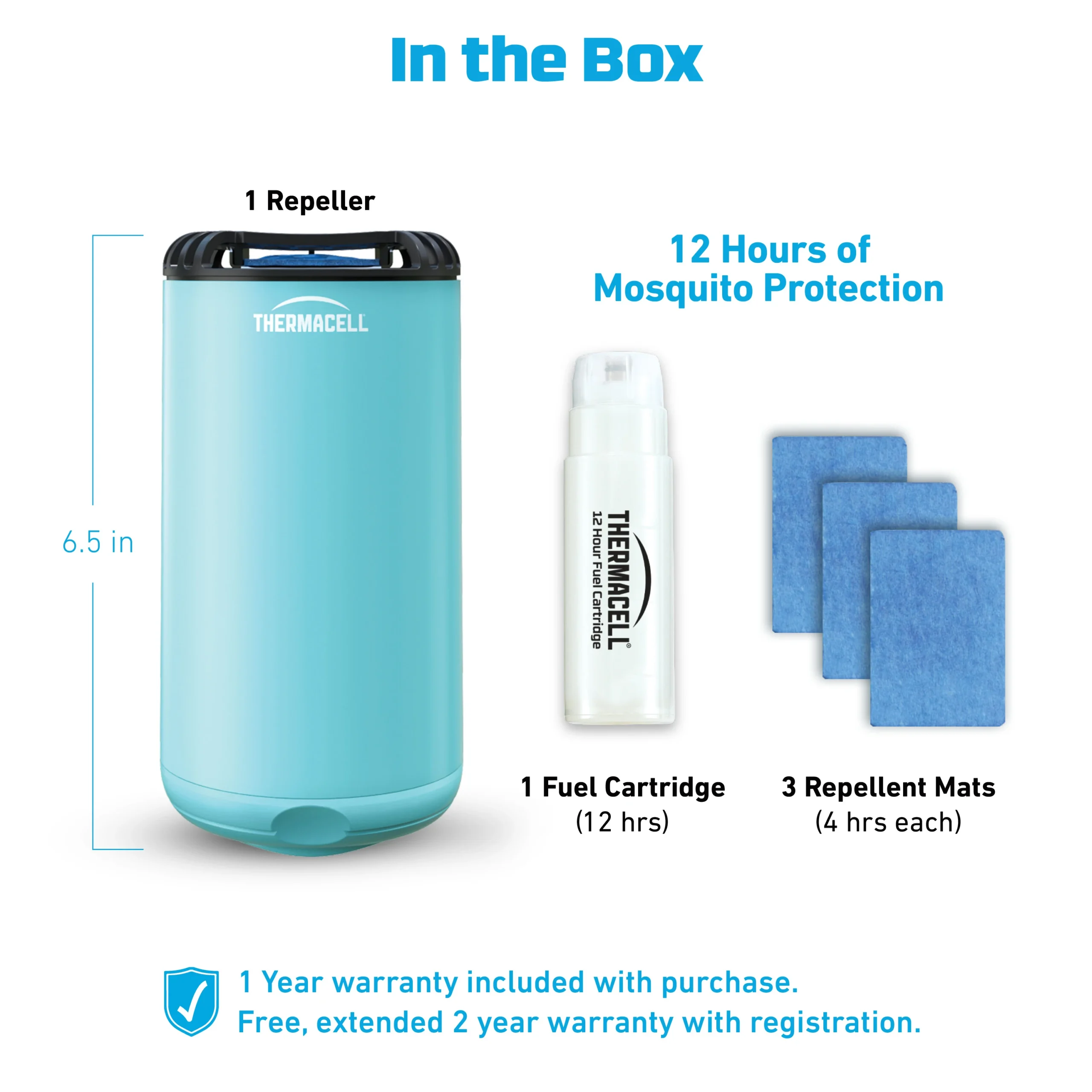 The Radius provides a 20-foot zone of advanced mosquito protection. Additionally, the Radius is rechargeable and features a 6.5-hour battery. Plus, the Thermacell Radius comes with 12 hours of mosquito repellent included.