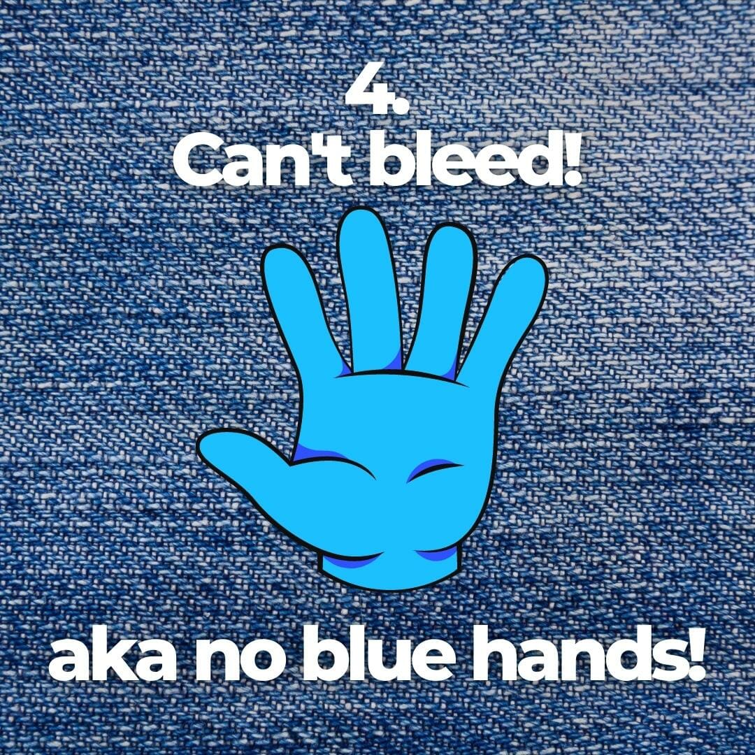 Most new jeans, especially dark ones, leave your hands looking blue (and wondering if you have Raynaud’s Disease – what usually causes unexplained blue hands).