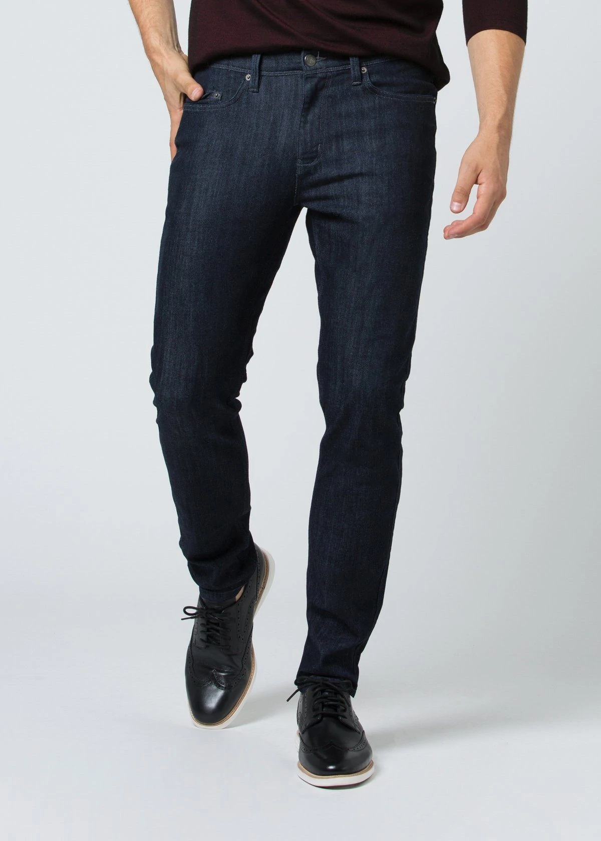 I found the slim fit performance denim to work for almost any body type and be fairly forgiving.