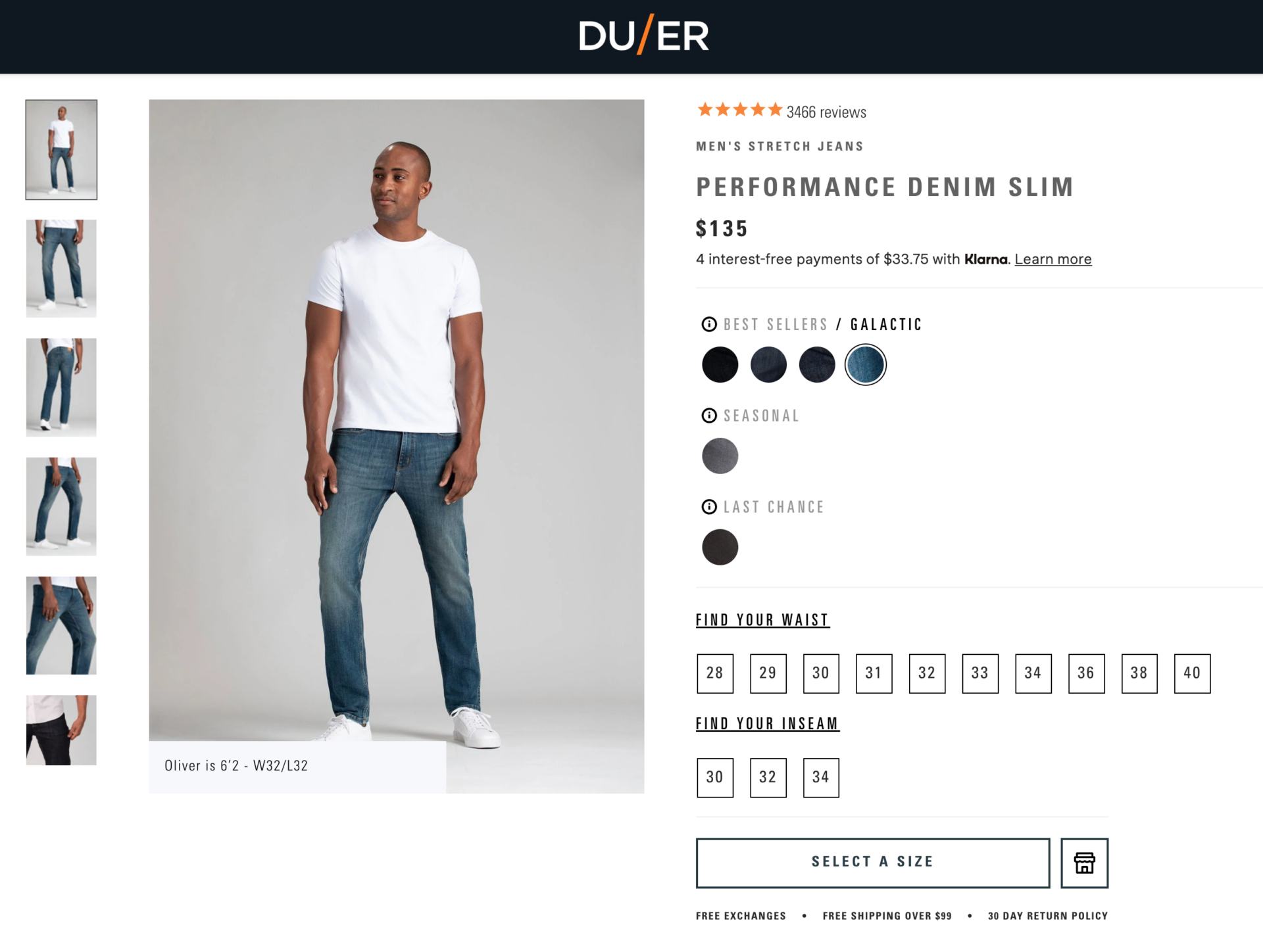 Duer is available in a wide variety of colors, fits (ranging from slim to skinny to relaxed) and overall looks available.