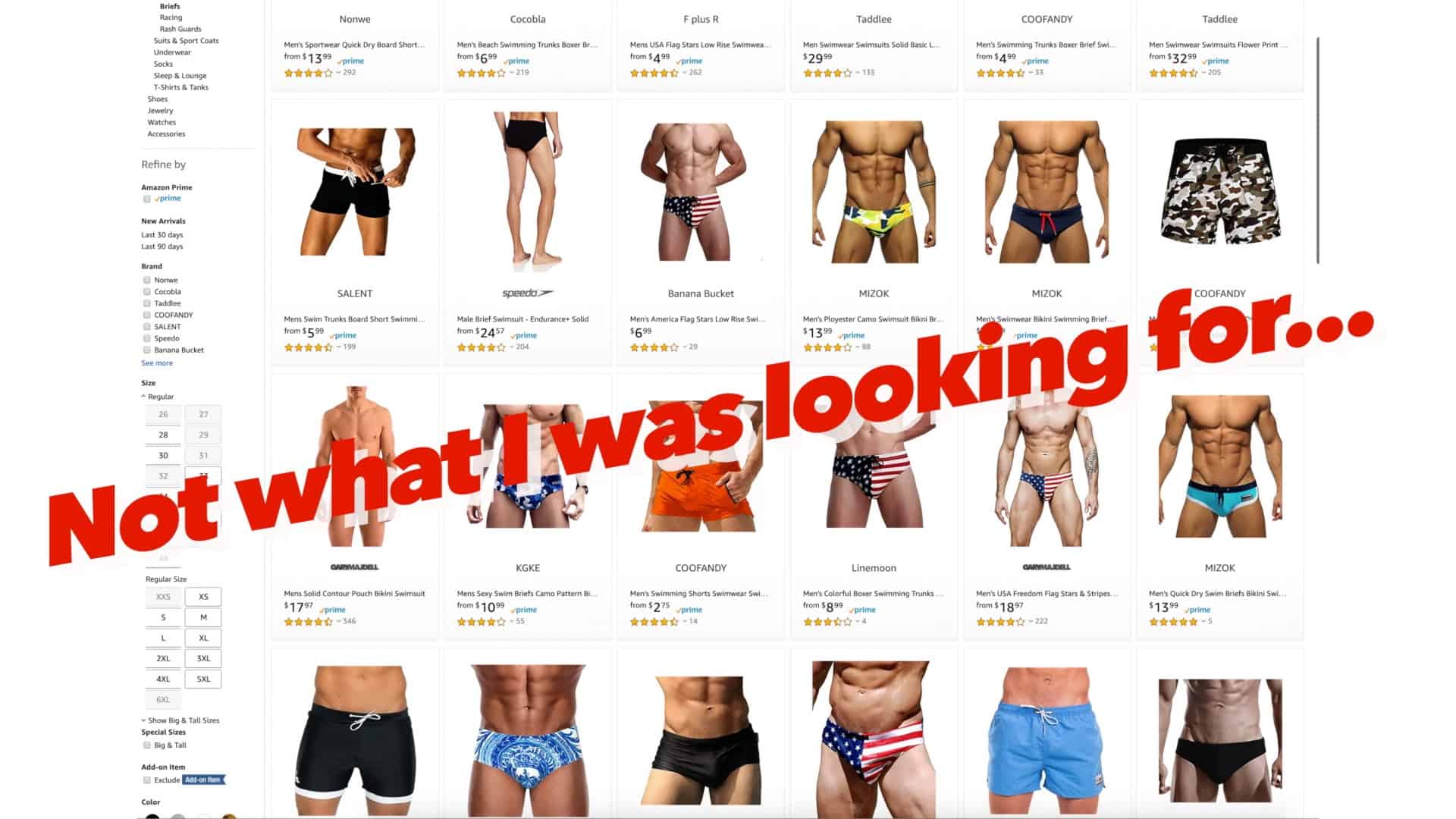 A quick warning on searching for “Swim Trunk Underwear” on Amazon. You’ll find a lot of things you probably are not searching for: