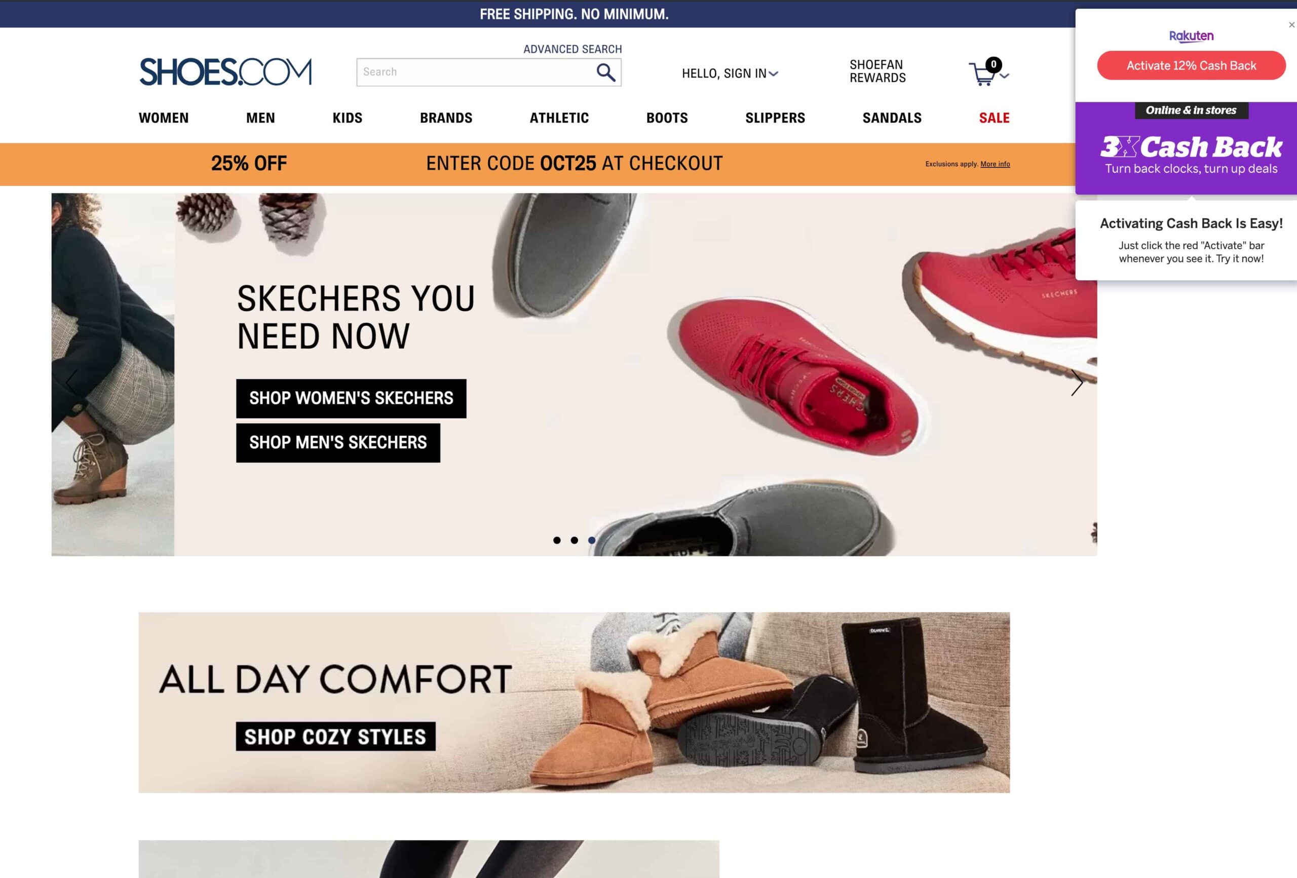 Even better, when you visit a website, like Shoes.com – it shows you if there is cash back available. Simply click “Activate 12% Cash Back” in the example below and you’ll get the 12% cash back added to you account!