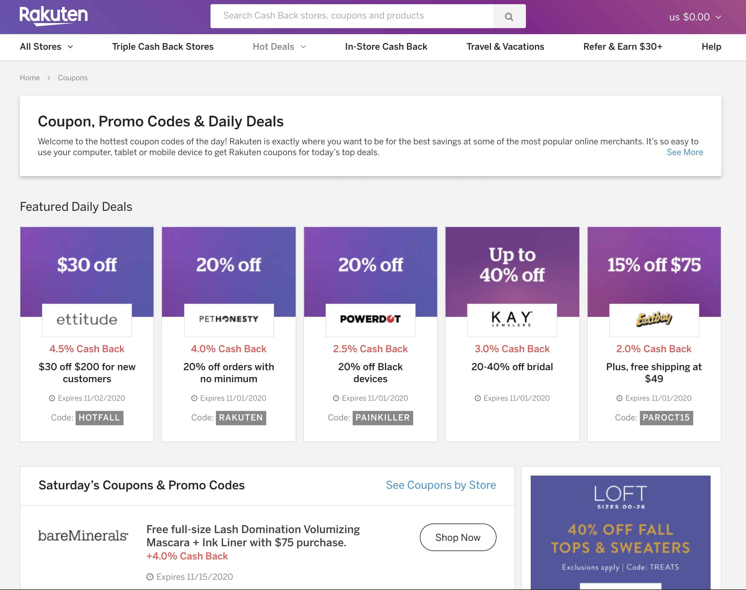 This is a small issue with Rakuten we’ve seen. You can’t use things like our Rothy’s Promo Code AND get cash back on Rakuten. It’s rare that you’d be able to double-dip on coupon codes and cash back, however, you can see the coupons available once you log in:
