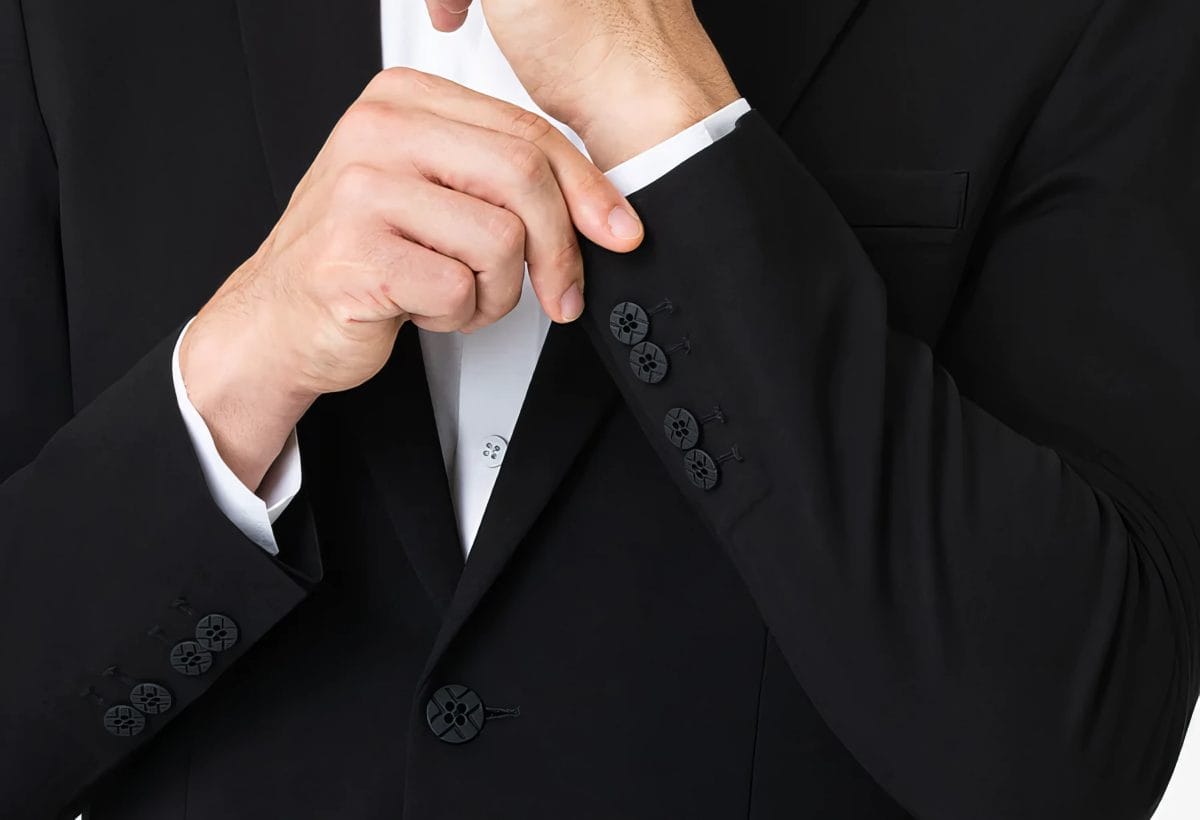 A significant enhancement is the transition to premium bullhorn buttons, replacing the previous versions’ more modern alternatives. This change introduces a classic touch, aligning with traditional tailoring aesthetics. Bullhorn buttons are renowned for their durability and timeless appeal, contributing to the suit’s refined appearance.